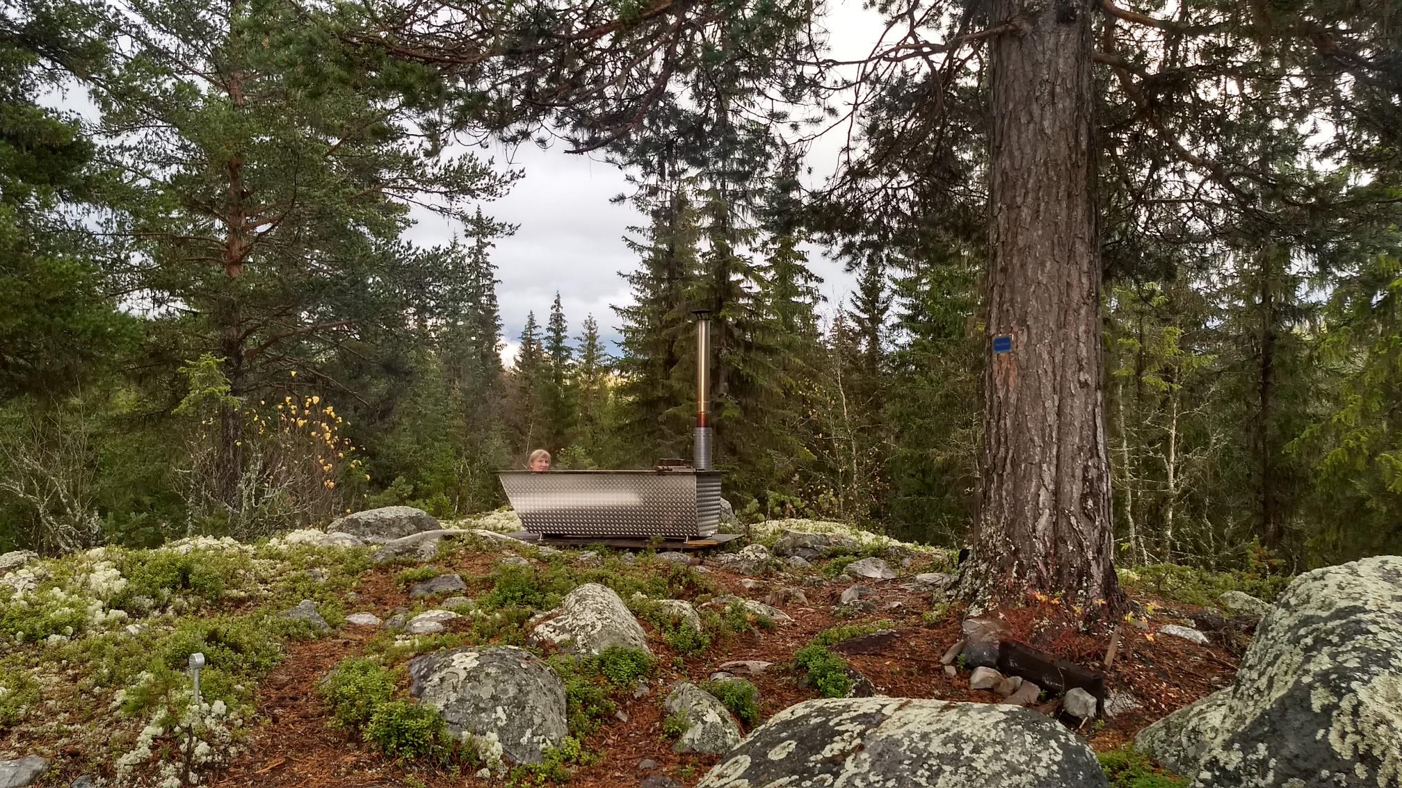 At the back of the beyond, in a forest climbing the mountain, above a tarn with water lilies the small sauna resort is private and intimate. There are no neighbors and a no-cell phone and no-camera policy in place. Out-of-the-way, located in the middle of nowhere, the beauty is remarkable but not spectacular, discreet and unpretentious with no drama. It’s off-grid with no electricity. Running water comes from a brook. Food is prepared over open fire. Full service can be arranged including transport, food and overnight stay.